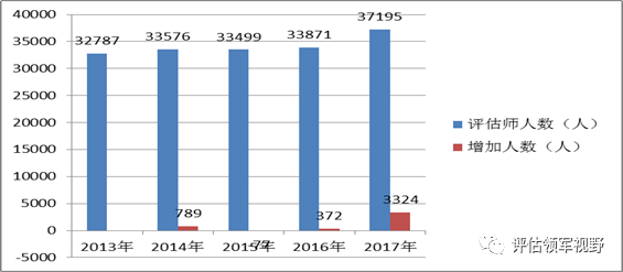 图2:2013-2017年全国资产评估师人数及增量