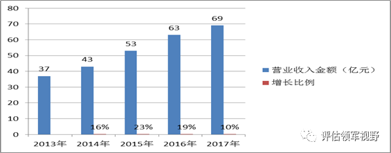 图1:2013-2017年资产评估机构综合评价前百家机构营业收入及增速